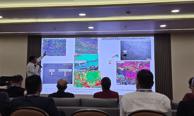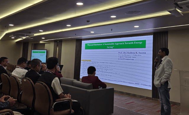Sesi acara ini dilanjutkan dengan pemaparan materi yang lebih mendalam berjudul “A Physical Simulation: A Sustainable Approach Towards Energy Saving” oleh Prof. (Dr.) Kuldeep K. Saxena, Director of Research Collaboration dari Galgotias University, India. Dalam pemaparannya, Prof. (Dr.) Kuldeep K. Saxena menekankan pentingnya simulasi termomekanik sebagai solusi berkelanjutan bagi sektor industri. Beliau juga mengulas kecanggihan teknologi Gleeble-3800, sebuah simulator yang mampu menguji material pada suhu ekstrem untuk menganalisis perilaku deformasi material hingga tingkat mikro.